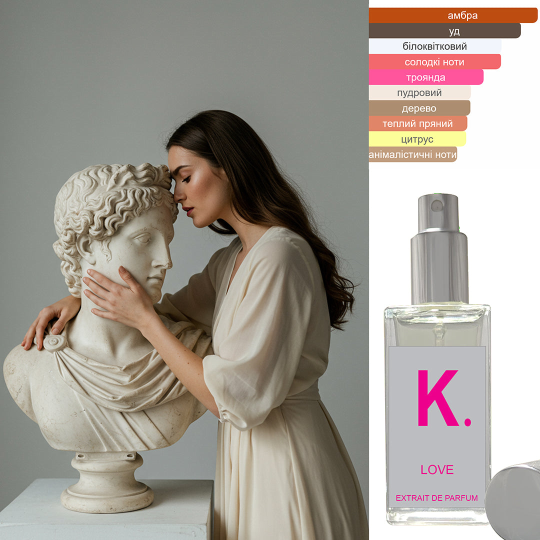 " LOVE " втілює сутність відкритих просторів, пропонуючи свіжий аромат, який передає силу та свободу. Його пряна та цитрусова композиція створює унікальний досвід, ідеальний для тих, хто шукає класичний парфум з характером. Поєднання енергійних та деревних нот визначає аромат як вишуканий і міцний одночасно.